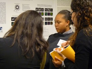 Ebony Flowers, a Bridges student at California State University, Long Beach, talks about her stem cell research with other students