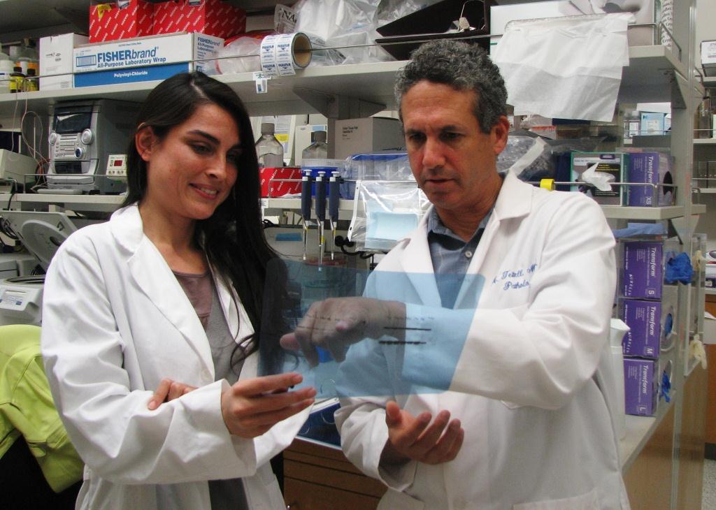 | Michael Teitell working with one of his lab students |