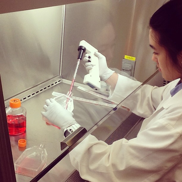 | Nancy Tran changing media flasks containing mesenchymal stem cells. She submitted this photo through Instagram to CIRM’s #CIRMStemCellLab collection |