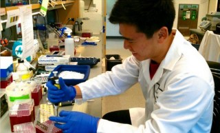 | Jeffrey Yu pipetting in the Clarke lab at Stanford. He submitted this photo to our #CIRMStemCellLab Instagram feed |