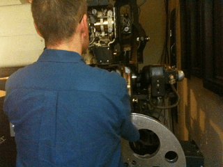 | Gerhard Bauer running his film projector. Yimin Yang submitted this photo to our #CIRMStemCellLab Instagram feed. |