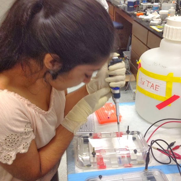 | CIRM-supported high school student Amy Thakrar carrying out a stem cell research project in the lab of Joel Rothman lab at UC Santa Barbara |
