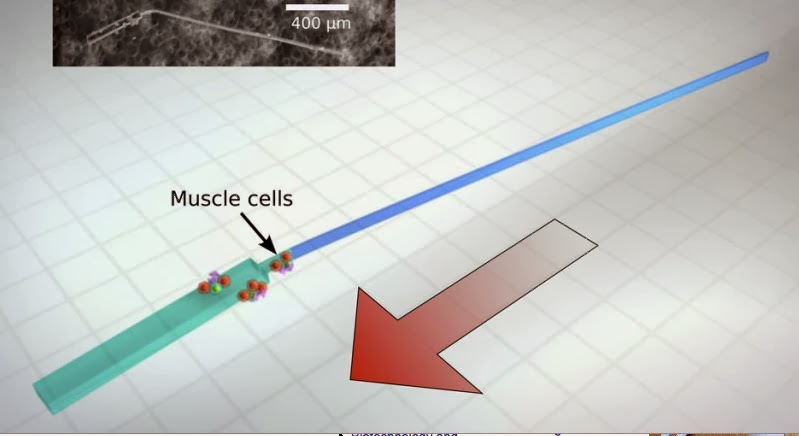 A team at the University of Illinois combined flexible polymers and heart muscle cells generated from stem cells to create synthetic “micro-organisms” capable of swimming in the blood stream. The researchers hope to perfect their miniature bio-bots so that they can deliver drugs or target cancers.
