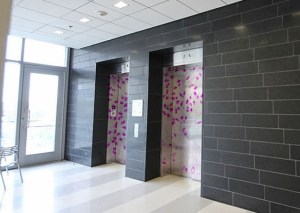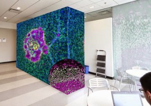 They came up with a number of different proposals using different stem cell images and colors to brighten up the building and help give visual clues as to where you are in the facility. They wanted those colors and images to be part of the experience from the moment you walked in the lobby, to getting out of the elevator and walking down a corridor.