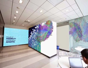 “a designed environment that would enliven the space, enrich the researchers’ experience, convey a sense of the current research to visitors, and be visually energizing and engaging.”