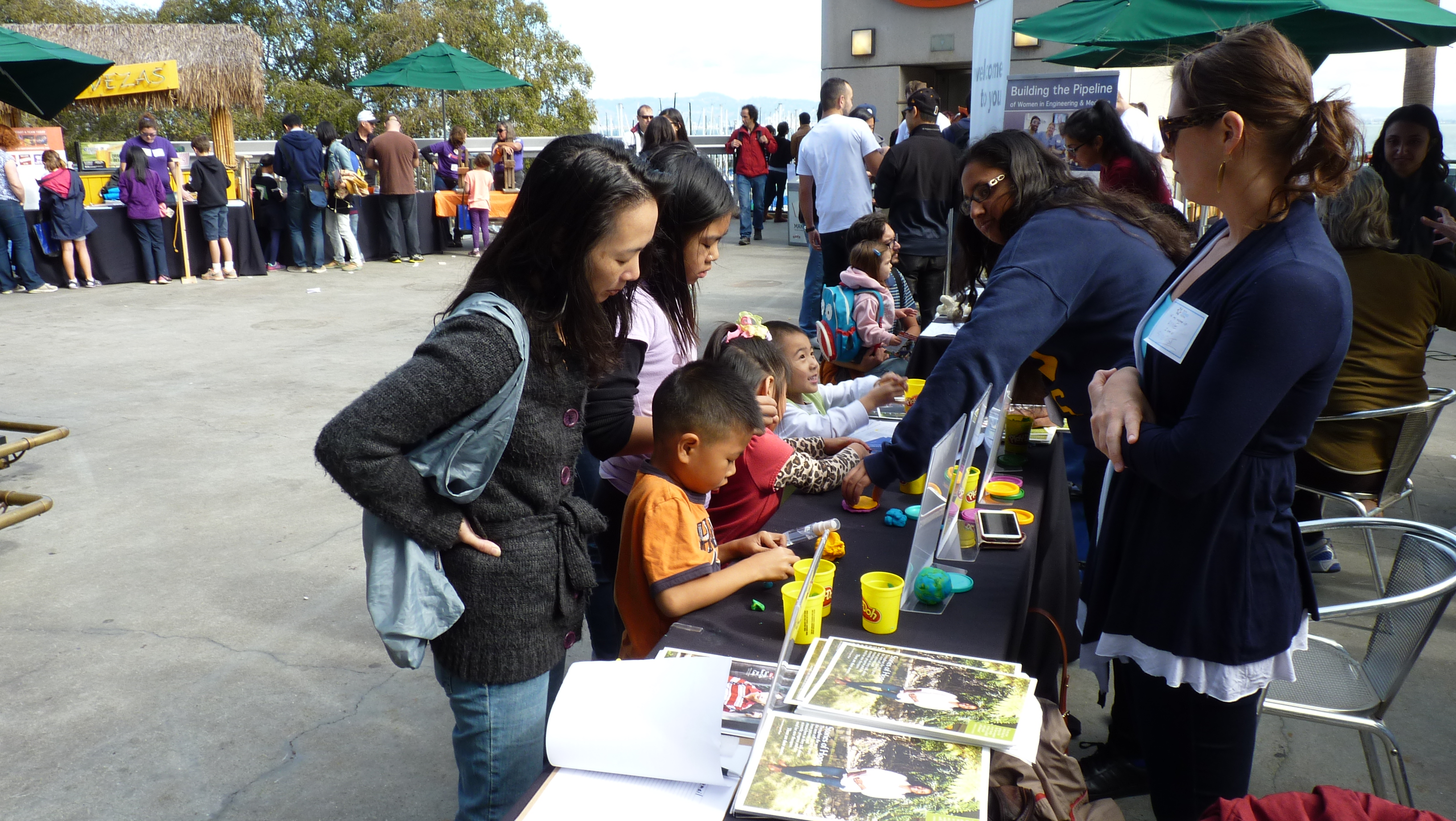 The enthusiasm by kids and parents alike was infectious—children racing from one booth to the next, eager to see what each one had in store. Of course the fact that some booths wowed the parents as well as the kids didn’t hurt—but the bottom line was the science and the scientists, showing that it could be fun and fascinating and engaging. While not many parents got into the Play-Doh themselves, they spent considerable time talking with us about the progress in stem cell science.