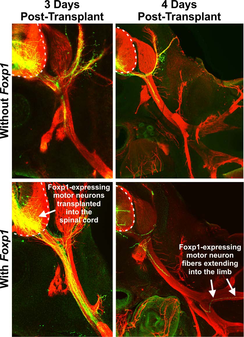 Normally, Foxp1 is found in healthy, functioning limb-innervating motor neurons. But in stem cell-derived motor neurons, Foxp1 was missing. So the team reasoned that Foxp1 might actually be the key factor to successfully growing these neurons.