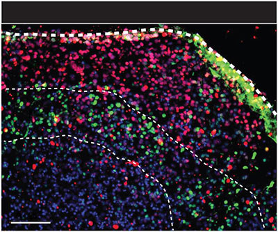 In the new cortex spheres the nerves are healthier with a better network of the natural supporting cells called glial cells. The cells form layers that interact with each other like in our brains as we are developing.