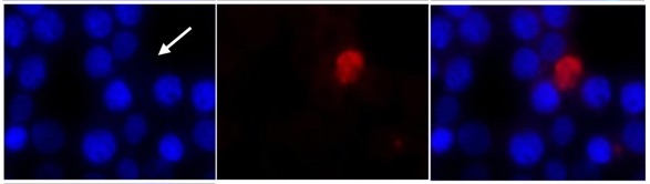 BORIS is expressed in breast cancer stem cells (red) but not in breast cancer cells (blue). (Alberti et al. 2015)