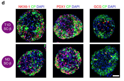 Scientists have generated beta cell-like cells from iPS cells derived from T1D patients previously, but the biological nature and function of these cells wasn’t up to snuff in a side by side comparison with beta cells from non-diabetic patients. They didn’t express the appropriate beta cell markers and failed to secrete the appropriate levels of insulin when challenged in a dish and when transplanted into animal models.