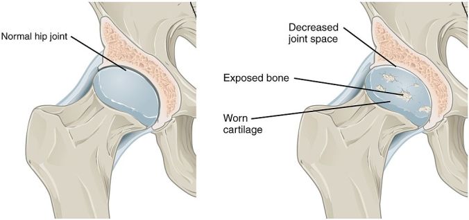 Illustration of damaged cartilage within an osteoarthritic hip joint Image: Wikipedia/Open Stax