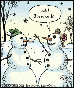 Kevin: Embryonic stem cells. Without that one cell none of this work, none of us when you come to think of it, would be possible. Whenever I give talks to the public one of the first things I talk about when explaining what stem cells are and how they work is the cartoon from Piraro, the one featuring the snowmen who look up at snowflakes and say “oh look, stem cells”. For me that captures the power and beauty of these cells. Without them the snowmen/women would not exist. With them all is possible.