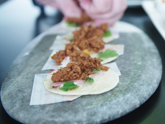 Just’s tacos made with lab-grown chorizo. (Wired)
