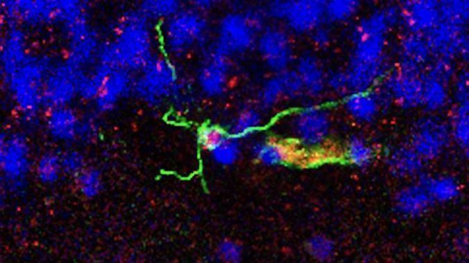 This image shows what scientists say is a new neuron in the brain of an older human. A new study suggests that humans continue to make new neurons throughout their lives. (Columbia University Irving Medical Center)