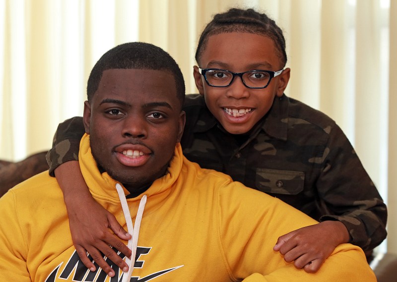 Brothers, Emmanuel “Manny” 21 and Aiden Johnson 7 at their home in Brockton, Massachusetts. Both brothers were born with sickle cell disease. Photo courtesy of Matt Stone for MediaNews Group/Boston Herald