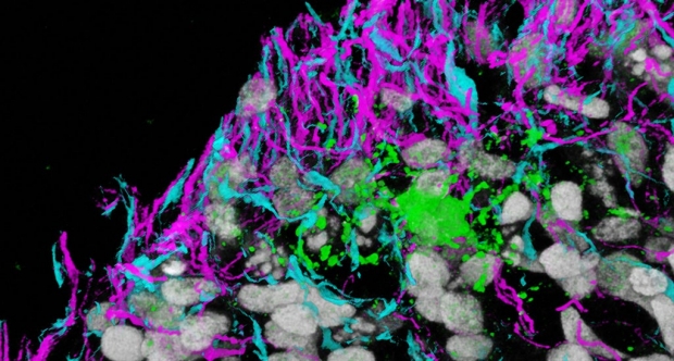 “We now have multiple cell types interacting in one single culture. This permits us to look close-up at how the main cellular players in the human brain are talking to each other.”