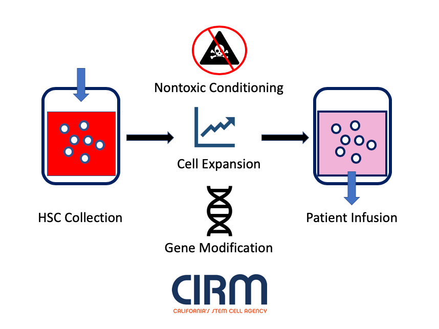 Scientists and clinicians have long sought means to overcome the technical challenges of HSCT in order to “unleash” its true potential to cure and treat a wider variety of diseases, and to  make it feasible (and affordable) for a much larger number of patients. CIRM has endeavored to support novel approaches that could hopefully produce game changing advances for the field. Some of these approaches were recently highlighted in a Perspective article, published in Stem Cells Translational Medicine in early 2020, along with a discussion of other important advances in related areas, listed below. More information can be found in that article or referring to our website to learn more about the individual projects.