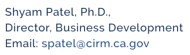 If you are a potential industry partner wishing to learn more about CIRM’s IAP, please contact: