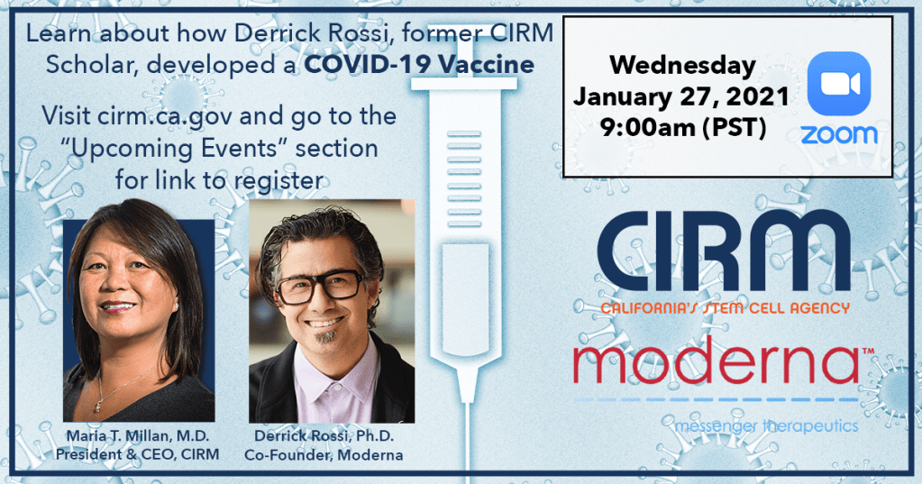 CIRM’s President and CEO, Dr. Maria Millan, will hold a live conversation with Dr. Rossi and we want you to be part of it. You can join us to listen in, and even post questions for Dr. Rossi to answer. Think of the name dropping credentials you’ll get when say to your friends; “Well, I asked Dr. Rossi about that and he told me…..”