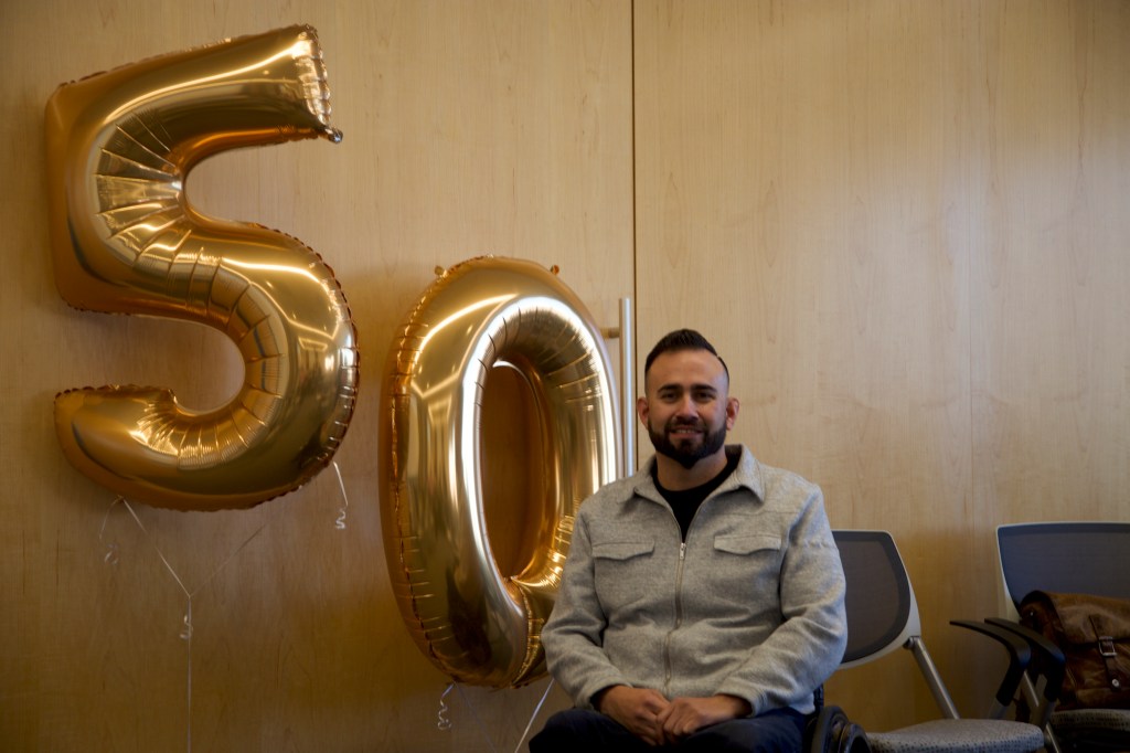 Patient advocate Rich Lajara with the Big Balloon celebration for funding 50 clinical trials