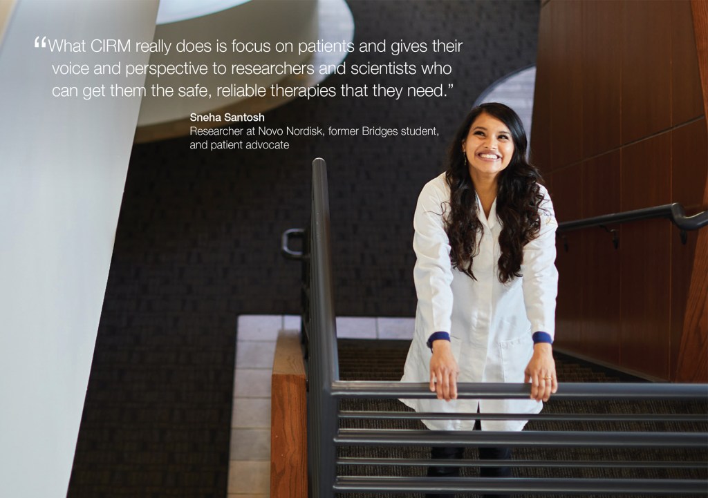 Through the Bridges Program, she learned about stem cells’ power to treat a disease’s root cause rather than just the symptoms. She saw how these transformative therapies changed people’s lives.