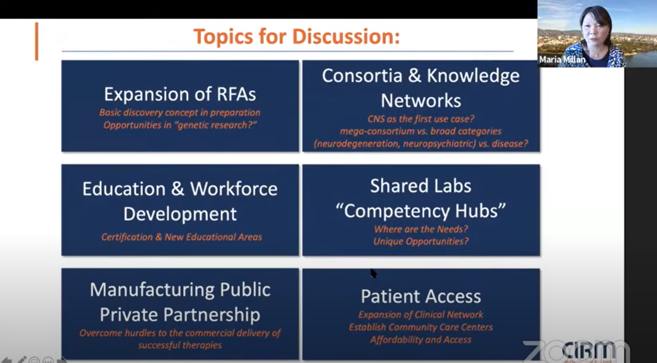 - In early 2021, immediately after the passage of Prop 14 and building upon our previous conversations, we formed a Strategic Scientific Advisory Panel comprising a distinguished group of national and international scientists in the stem cell field. Once again, we were advised to expand sharable resources (especially in the context of stem cell modeling), bring more attention to complex diseases such as neurodegenerative and neuropsychiatric disorders, and facilitate knowledge sharing.