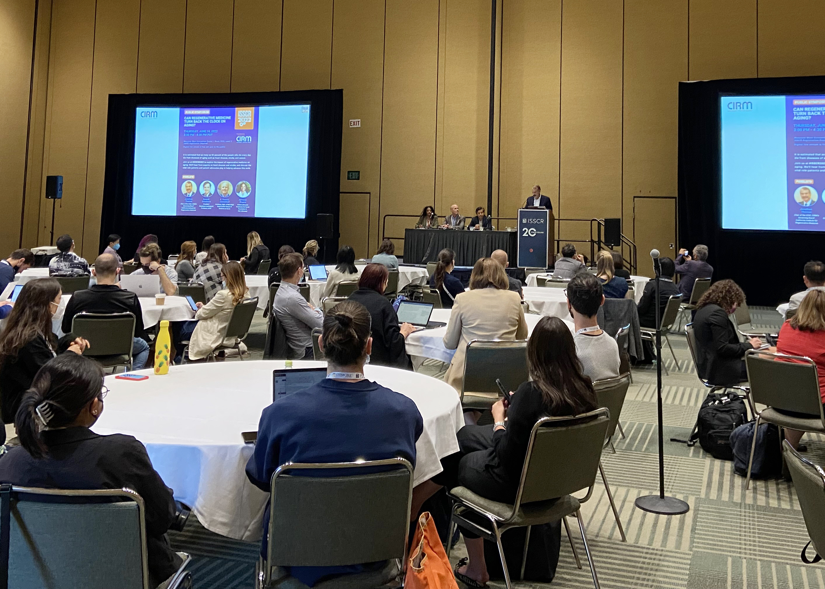 One of my favorite phrases is “standing room only”. I got a chance to use it last week when we held a panel discussion on whether regenerative medicine could turn back the clock on aging. The event was at the annual conference of the International Society for Stem Cell Research (ISSCR) and more than 150 people packed into a conference room to hear the debate (so far more than 800 also watched a live stream of the event.)
