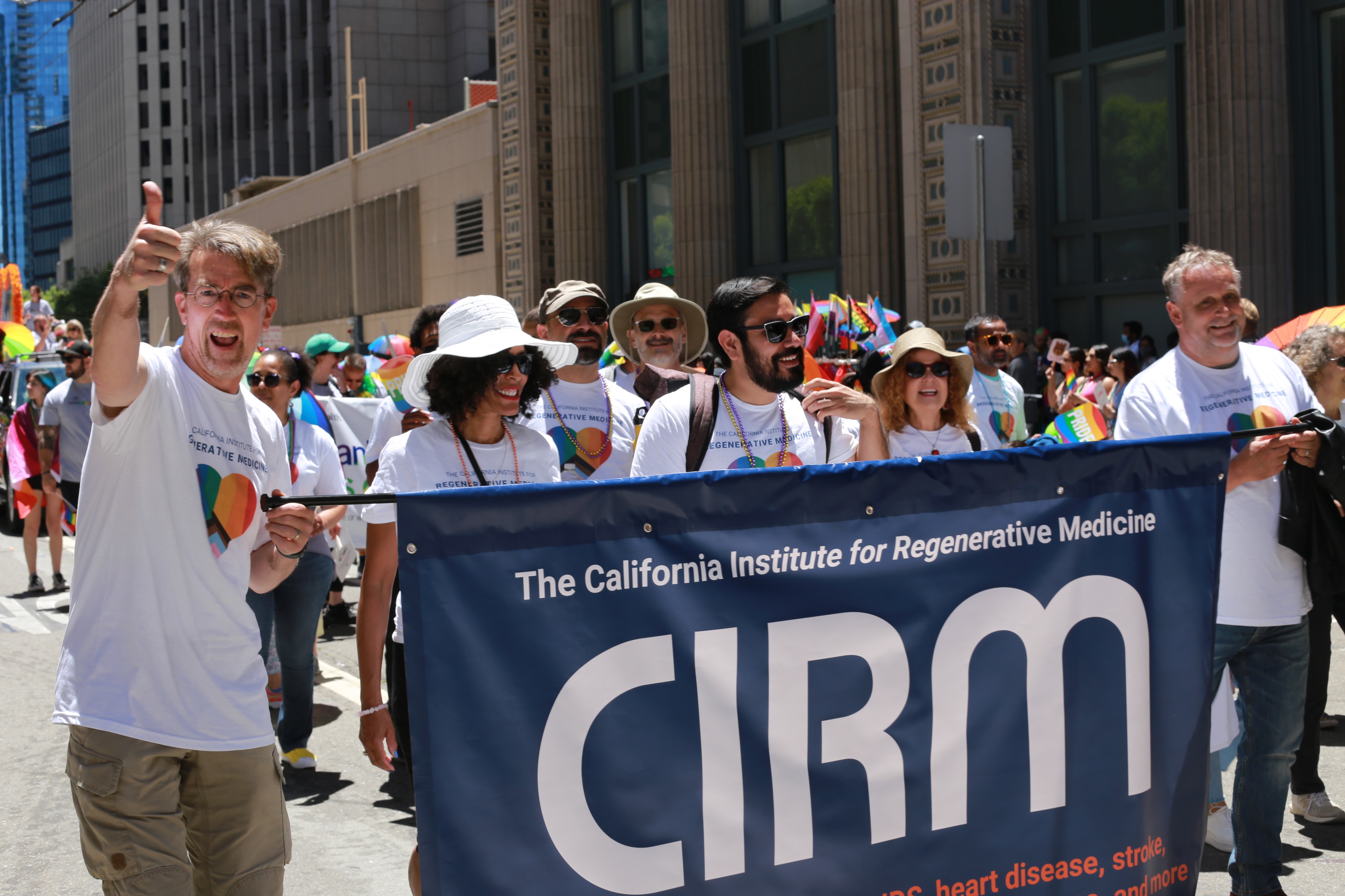 Yesterday the CIRM team were honored to be part of the San Francisco Pride Parade. To walk along the route with colleagues and friends, surrounded by hundreds of thousands of cheering people was such a fun way to spend the day, and gave us a chance to introduce ourselves to many people who may not have known who we were (although I did get several people saying “I voted for you” and “Go Regenerative Medicine”). To be able to share in the joy that people clearly felt at having the parade back again after a Covid-inflicted absence was just a delight. Here’s some images of the day.