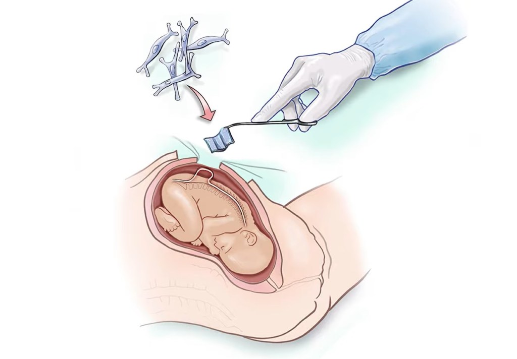Then, the stem cell patch was placed directly over the exposed spinal cord of the fetus. The fetal surgeons then closed the incision to allow the tissue to regenerate. The team declared the first-of-its-kind surgery a success.