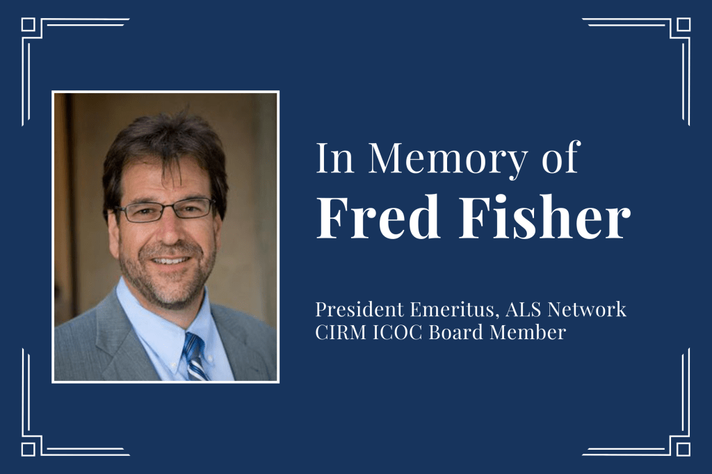CIRM would like to honor the contributions of Fred Fisher, MSW, LCSW, a dedicated member of our Independent Citizens’ Oversight Committee (ICOC) governing board and an enthusiastic patient advocate. Fred passed away in September.
